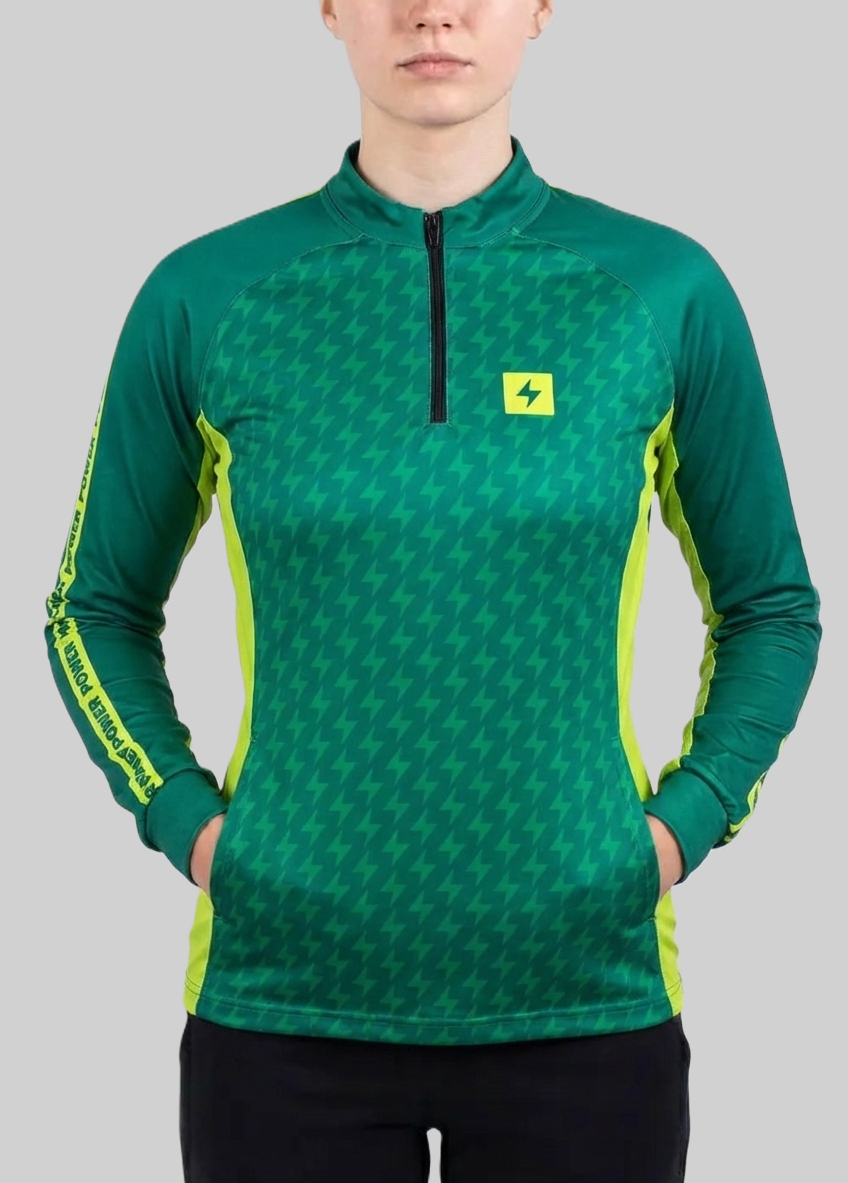 Nõudlikule harrastajale ja professionaalile mõeldud 1/4 pikkuse lukuga dressipluus sobib perfektselt vastupidavusaladeks (mugavustunne kuni -5 kraadiga). Jakk on valmistatud elastsest kangast, istudes selga väga mugavalt. Tänu elastaanmaterjalile jälgivad sellised riided keha kuju ega takista loomulikku liikumist. Käega katsudes tundub materjal siidjas, juhtides kehaniiskuse siseküljelt eemale. Hingavuse täiustamiseks on mõlemale küljele lisatud õhulised kangapaneelid.