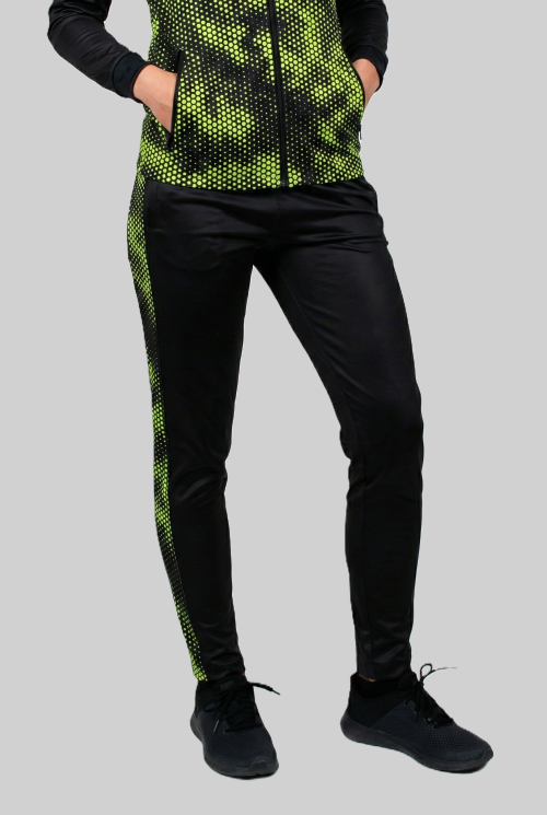 Püksid on valmistatud elastsest kangast, istudes selga väga mugavalt. Tänu elastaanmaterjalile jälgivad sellised riided keha kuju ega takista loomulikku liikumist. Käega katsudes tundub materjal siidjas, juhtides efektiivselt kehaniiskuse kanga siseküljelt eemale. Hea valik soojenduse tegemiseks ja esindusriieteks.